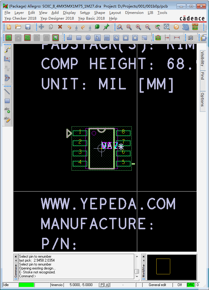 程序功能:重新命名封装的pinnumber。对单个pin进行重新定义pinnumber,可以实现pinnumber+1连续定义pinmumber。